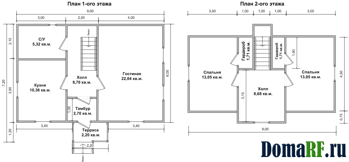 | Размеры в плане: | 7.2x9 | Время строительства: | 16 — 20 дней |