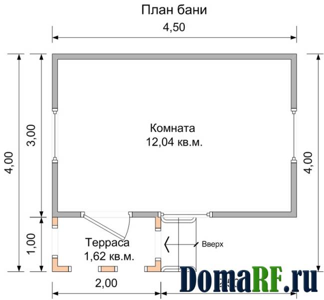 | Размеры в плане: | 4x4.5 | Время строительства: | 5 — 7 дней |