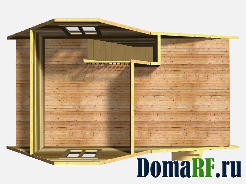 Доска (хвоя) строганная шпунтованная атмосферной сушки (толщиной 36мм). Парогидроизоляция прокладывается с одной стороны и утепляется в 50мм